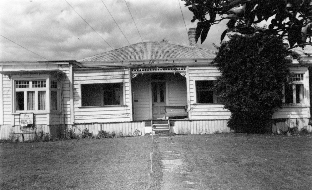 Reference NumberPhoto 02-541Description194 Fourteenth Avenue, Tauranga. Early maternity home. Wider view of front. FormatPrintPhysical Descriptionblack and white printPhotographer/CreatorSyder, E.O.
