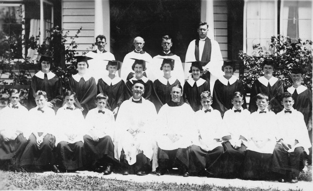 Reference NumberPhoto 02-603DescriptionHoly Trinity Choir, Tauranga, 1931. Kitty Hardy fourth from left in middle row. FormatPrintPhysical Descriptionblack and white print