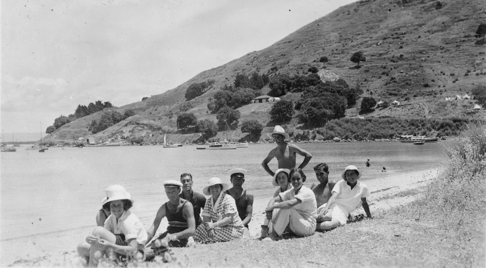 Date1920sReference NumberPhoto 03-044DescriptionFrom Kitty Hardy's album: "Summer days at the Mount. " Waikorire (Pilot Bay), Mount Maunganui, 1920s. FormatPrintPhysical Descriptionblack and white print