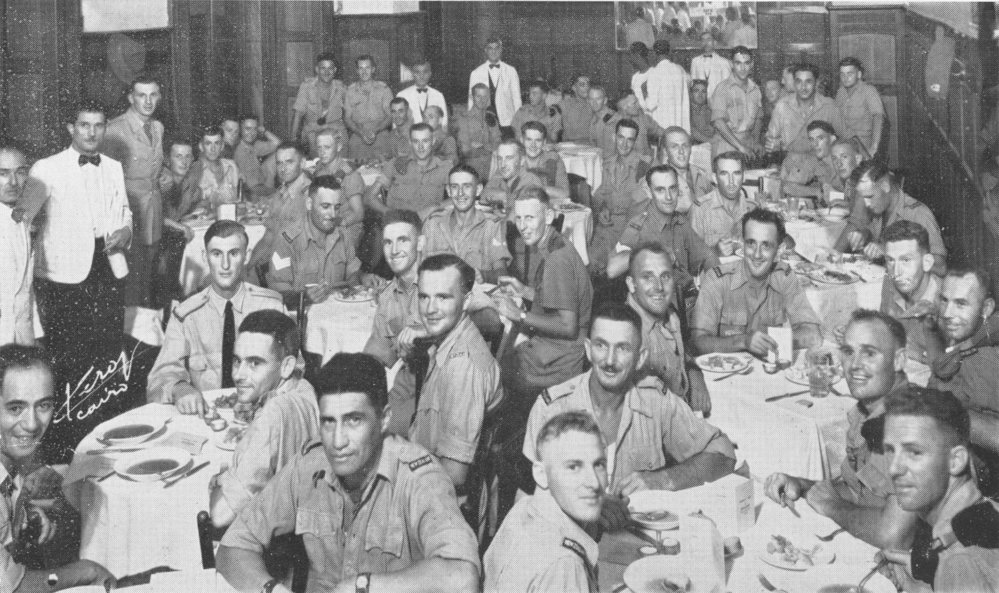 Date1940sReference NumberPhoto 01-134DescriptionTauranga District soldiers in Cairo, 1940s. Printed underneath: This picture was taken in the course of a reunion of soldiers from the Tauranga district serving in the Middle East held in the Phoenix Restaurant, Sharia Emad el Din, Cairo. Those present at the function included: - R. J. V. Sutcliffe, Geo. W. Webber, C. A. Wells, Ken Sutherland, Jack Kennedy, A. Le Cocq, Dug. Moore, D. H. Kennedy, J. D. Kennedy, L. Norris, R. W. Ludwig, A. N. Coker, W. Goodacre, A. Thwaites, R. J. Sutherland, Jack Heke, Jack Smith, C. C. Reed, J. Henderson, Chas. B. Curnow, L. A. Davies, Don Ross, A. Bougen, Ces. Guinness, R. F. Walford, W. Hudson, E. L. Faulkner, Chum Denniston, W. Parker, W. Vint, J. Thomson, F. Bougen, Bill Parlane, Stan Merriman, H. R. Mansel, B. Mansel, Tom Keenan, Bert E. Gibson, K. Harawira, A. N. Marsh, W. J. Kennedy, M.M., J. C. Hamilton, Neil G. Hansen, J. Heke, M.M., Adolphus Taki, A. J. Voss, D.C.M., G. D. Harrison.FormatPrintPhysical Descriptionblack and white print
