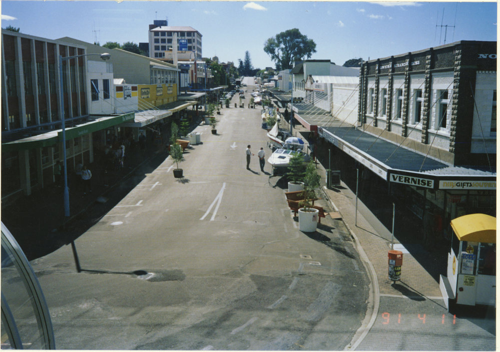 Date11 April 1991Reference NumberPhoto 01-666DescriptionLooking north up Willow Stret, Tauranga, from Spring Street during Mall trial 11 April 1991.FormatPrintPhysical Descriptioncoloured print