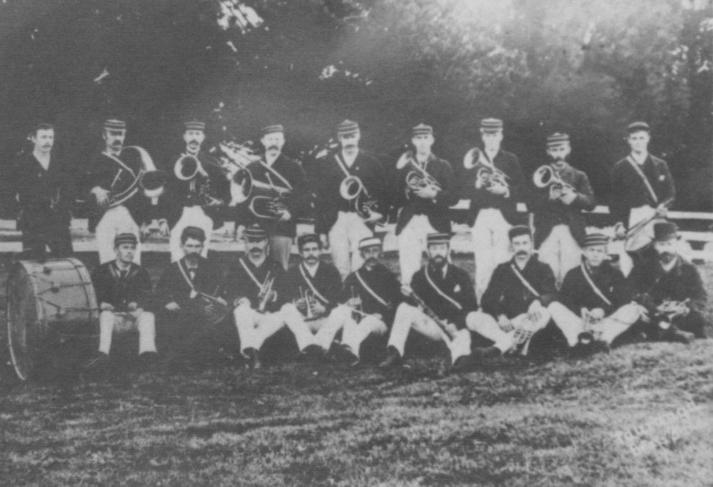 Date1887Reference NumberPhoto 01-305DescriptionTauranga Brass Band, 1887. Standing: R. Blake, T. Blick, G. Bonner, M. Kenneally, T. Stuart, K. Tapper, P. Morris, C. Carter, W. ClarkSitting: W. Home, T. Kennedy, A. Fox, F. Stewart, G. A. Ward, S. Smith, C. Willmott, W. Robinson, E. G. B. Moss. FormatPrintPhysical Descriptionblack and white print