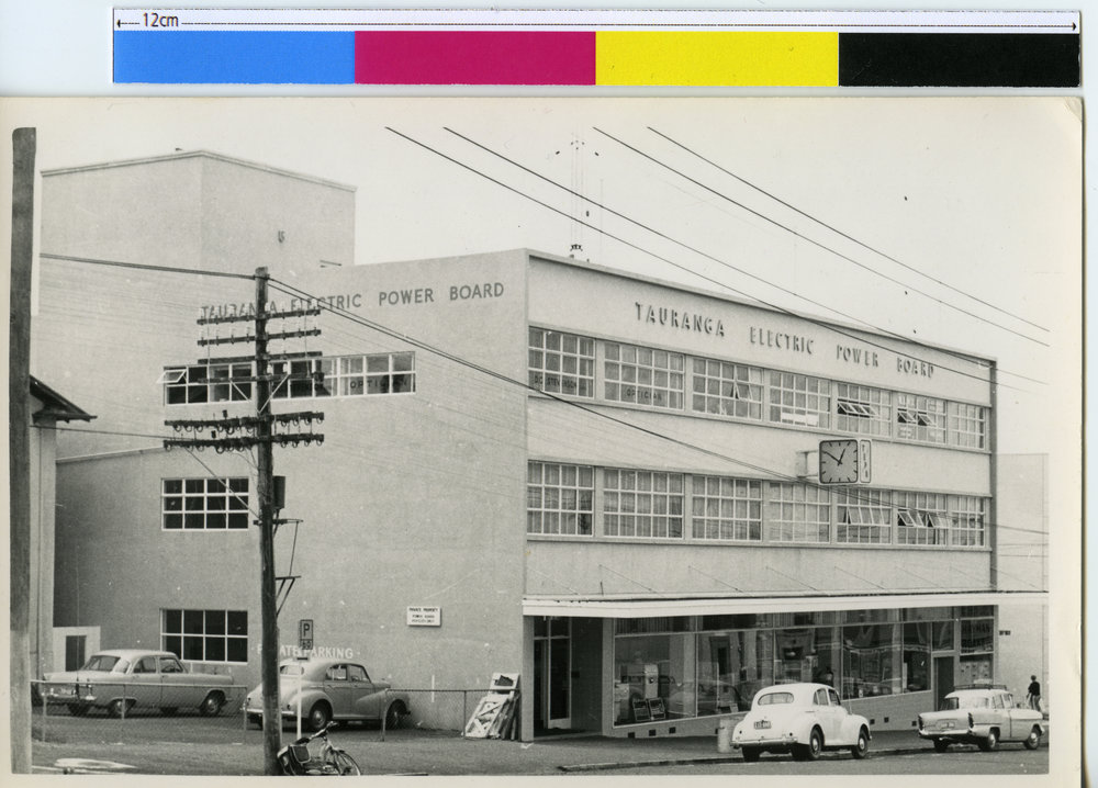 Datec. 1958Reference NumberPhoto 16-051DescriptionTauranga Electric Power Board (built 1958) on Spring Street, Tauranga. Possibly taken the year it was build (1958). Photographer unknown.