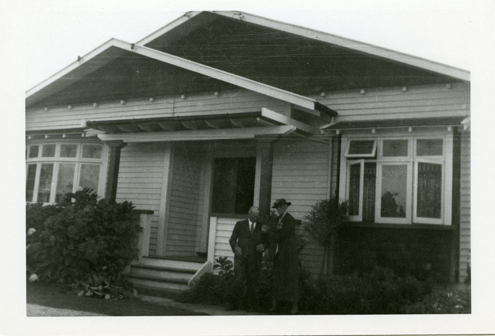 Date1940-1949Reference NumberPhoto 12-029DescriptionPhotograph of William and Maria Harvey outside their residence on 21 Third Avenue in Tauranga. Taken sometime during the 1940s and donated to Tauranga Library by Myra Millar. FormatPrintPhysical Descriptionblack and white copy printSource of AcquisitionMyra Millar