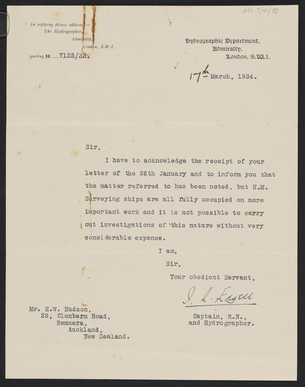 Edgell, J.L. , Letter from J. L. Edgell to Harold Willey Hudson (17 Mar 1934). Pae Korokī, accessed 25/04/2026, https://paekoroki.tauranga.govt.nz/nodes/view/21028