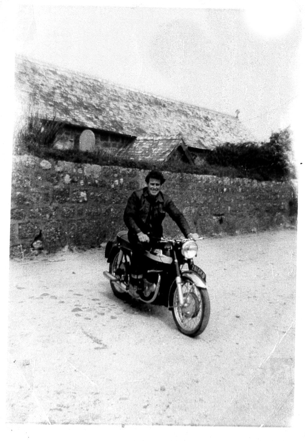 Date1960Reference NumberPhoto 12-228DescriptionPeter Curnow riding his Norton Dominator, 600cc Motorcycle at Lands End Cornwall. 1960. Part of Peter Curnow - Laarbruch collectionFormatPrintSource of AcquisitionPeter Curnow