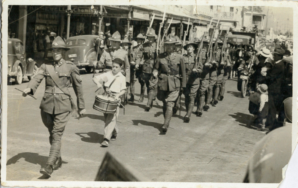 Date1939Reference NumberPhoto 12-317DescriptionNumber 9 platoon marching through Ōpōtiki. Noted with file 'C. D. Brown (behind drummer boy), 1939'. Stamped on reverse Photograph by George Stephenson, Waiotahi'. 1939. FormatPrintSource of AcquisitionThe 6th Battalion (Hauraki) Regimental Association Inc. History Room Curator, Tony Fraser.