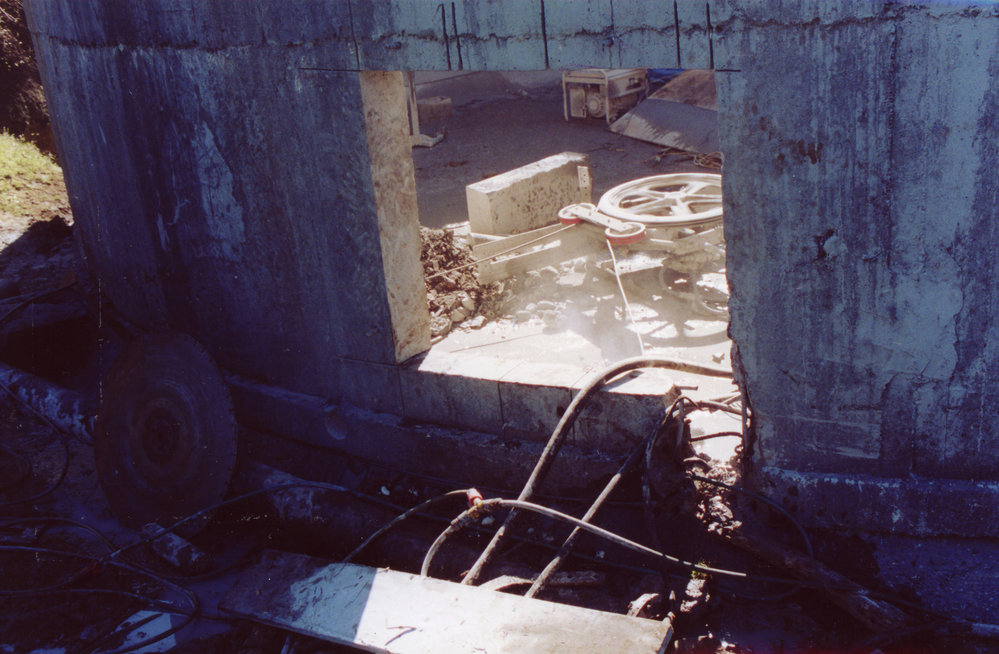 Date13 September 2004Reference NumberPhoto 05-149Description4005 gallon reservoir on Mauao, Mount Maunganui, just before its removal on 13 September 2004. It was no longer in use from c. 1960. It was built in c. 1886, by Captain Best for local steamers and coastal craft. (Bay of Plenty Times, 15 Feb 1887.) Initiated by Mr Bodell and agreed to by the Government. Cement was sent up by the Stella. Mr Bodell contributed an expensive tap.FormatPrintPhysical Descriptioncoloured print