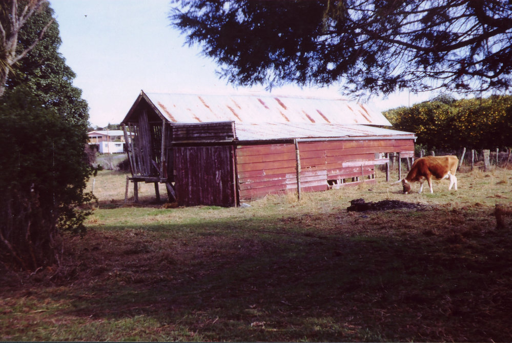Datec. 1960sReference NumberPhoto 05-185DescriptionFairview: maize crib at Mathesons' farm with a cow eating grass beside it, on the old Ōtūmoetai pā site.FormatPrintPhysical Descriptioncoloured print