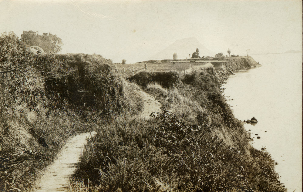 Datec. 1910sReference NumberPhoto 05-285DescriptionMonmouth Redoubt, Tauranga, looking north towards Mauao; track around eastern side of redoubt. FormatPrintPhysical Descriptionblack and white print