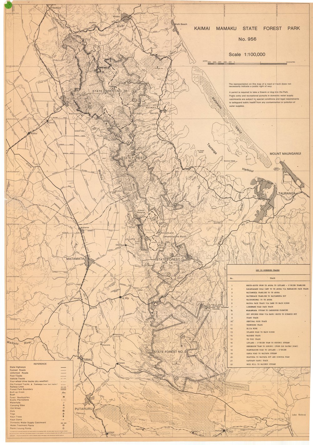 Date1949Reference NumberMap 19-062DescriptionTopogrphical map of the Kaimāī Mamaku State Forest Park.Barcode33001000194901
