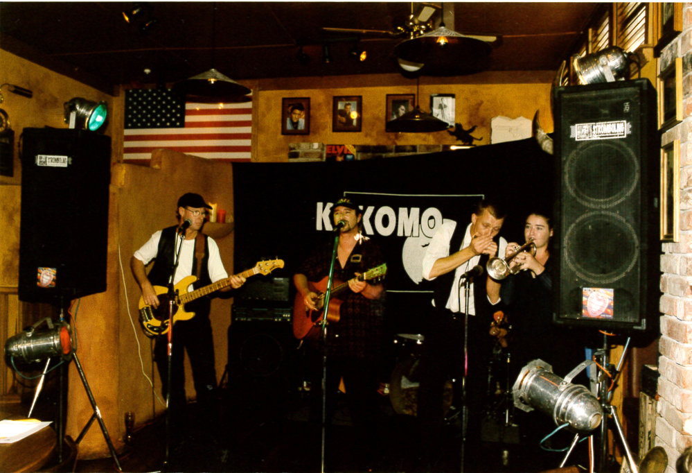 Date2001Reference NumberPhoto 12-476DescriptionA band playing in a pub. "Kokono" Nigel Masters, Derek Jacombes, Grant Bullot, Sonia Bullot. 39th Tauranga National Jazz Festival, 2001. FormatPrintSource of AcquisitionTauranga Jazz Society