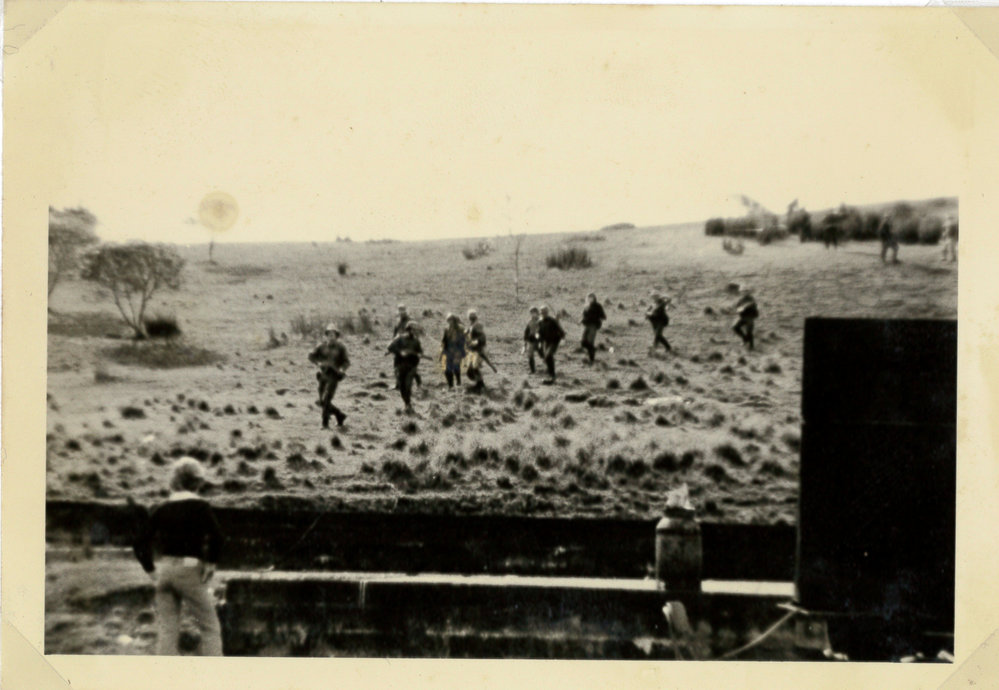 Date1976Reference NumberPhoto 12-693DescriptionPatrol returning to base camp in Paeroa during exercises in 1976. FormatPrintSource of AcquisitionThe 6th Battalion (Hauraki) Regimental Association Inc. History Room Curator, Tony Fraser.