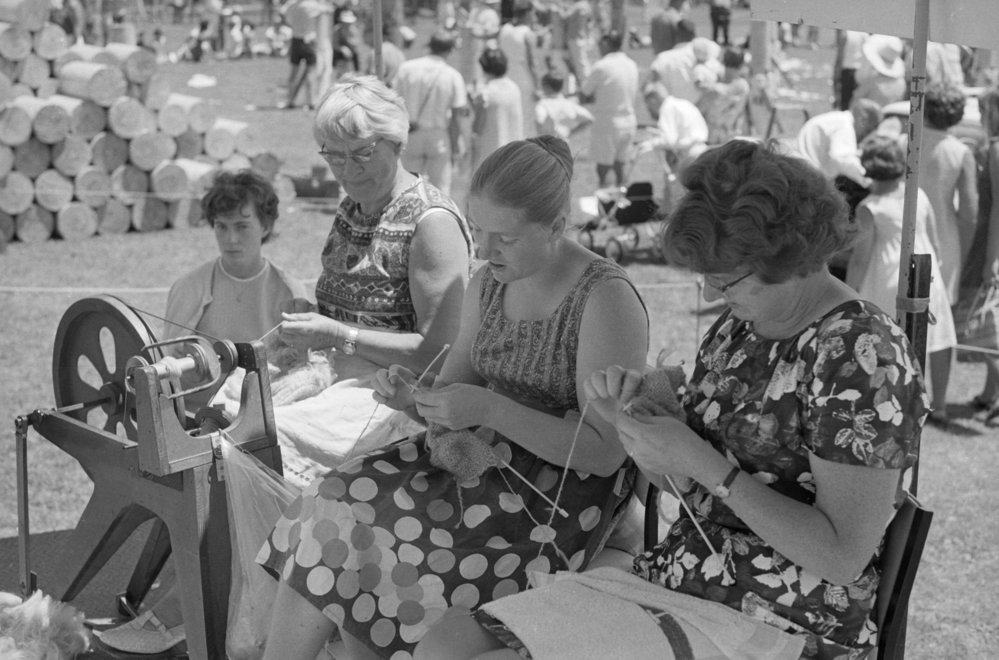 Variety at the Highland Games: spinners Gladys Braid, Mary Cannell and Alva Terrill (8 February 1969). Pae Korokī, accessed 15/03/2026, https://paekoroki.tauranga.govt.nz/nodes/view/23235