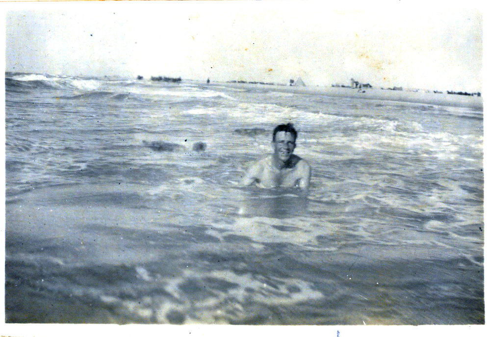 Date1914-1918Reference NumberPhoto 13-605Description A (perhaps) Arthur Harrison in the sea while on service in Africa during the First World War. Photo from a WWI album (1914-1918) taken by his Father Harrison, Arthur Charles, 1894-1994. FormatPrintSource of AcquisitionHugh HarrisonPhotographer/CreatorHarrison, Arthur Charles, 1894-1994