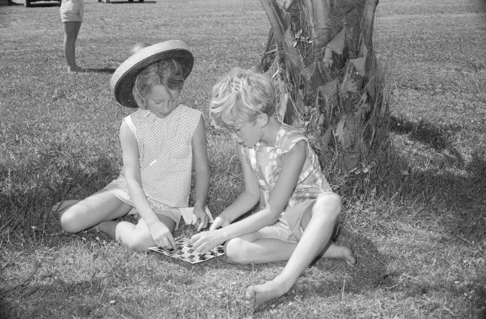 Date08 March 1969Reference NumberPhoto pn-1049DescriptionMUIOOF Picnic: Shery Porter & Barbara Bennett. Photograph taken for magazine number 81 of the Bay of Plenty Photo News, 8 March 1969, p.67