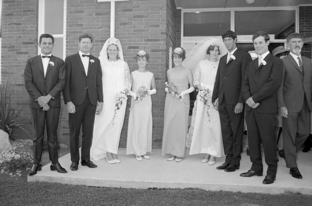 Date05 April 1969Reference NumberPhoto pn-1611DescriptionDouble wedding for sisters. Photograph taken for magazine number 82 of the Bay of Plenty Photo News, 5 April 1969,