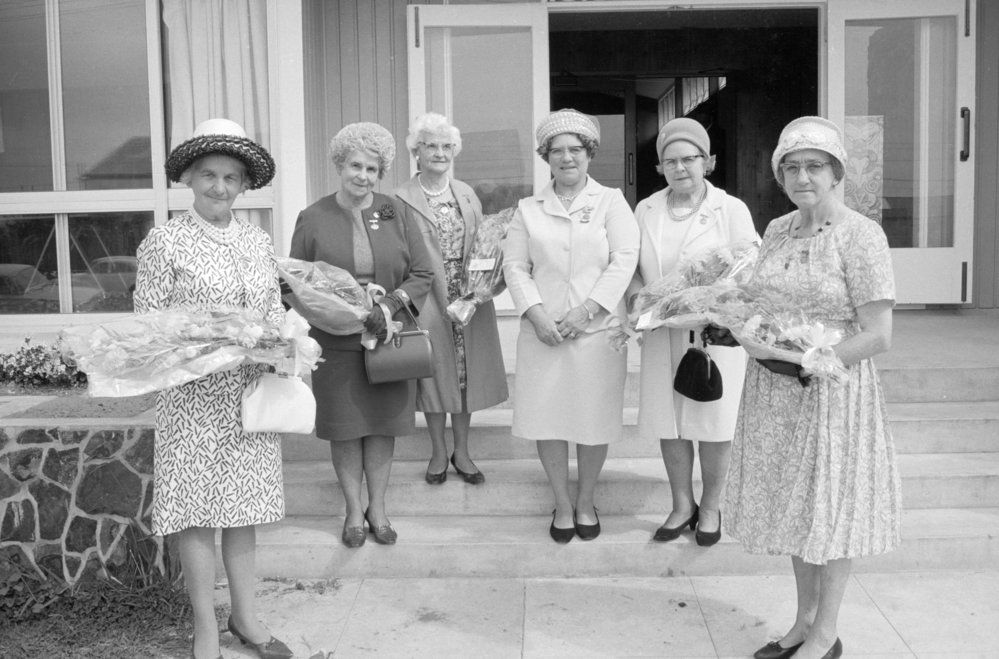 Date03 May 1969Reference NumberPhoto pn-1719DescriptionCWI members honoured : A Coster, W Shearer, R MacFarlane, Mary Richardson (Federation President), E Deeming & V E Rawlings. Photograph taken for magazine number 83 of the Bay of Plenty Photo News, 3 May 1969, p.31