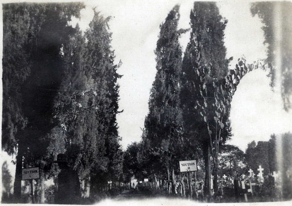 Date1914-1918Reference NumberPhoto 13-687DescriptionSoldier visiting a cemetery. Photo from a WWI album (1914-1918) taken by his Father Harrison, Arthur Charles, 1894-1994. FormatPrintSource of AcquisitionHugh HarrisonPhotographer/CreatorHarrison, Arthur Charles, 1894-1994