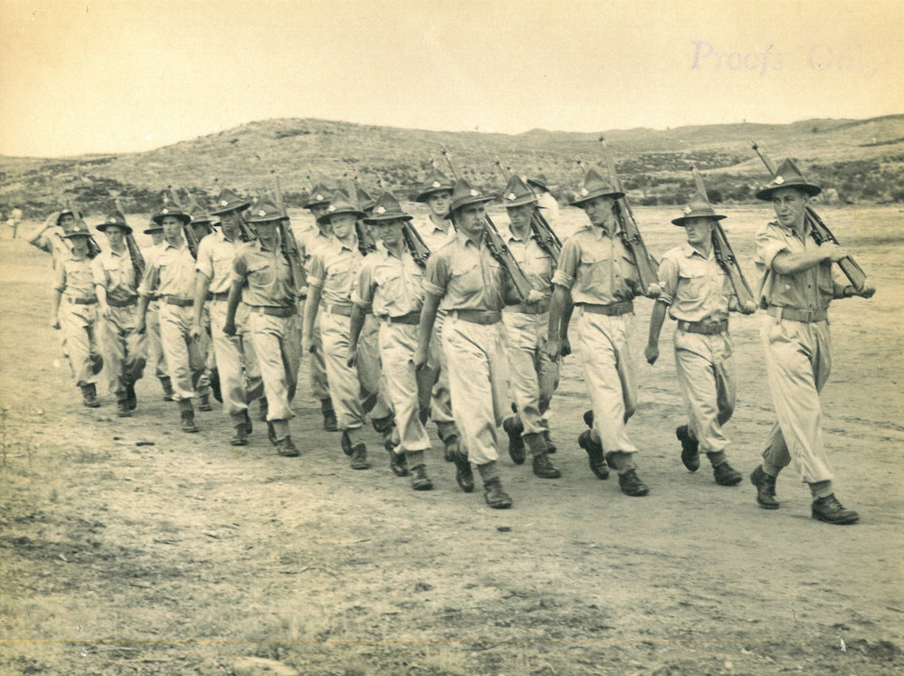 Date1950sReference NumberPhoto 13-920DescriptionJP110 5. Photograph proof of soldiers marching. Noted with file 'Tihoi mid 1950s - Sgt Frank O'Brien from D Coy Whakatāne with his platoon. Coy 2IC at rear is Capt Jim Paterson’. FormatPrintSource of AcquisitionThe 6th Battalion (Hauraki) Regimental Association Inc. History Room Curator, Tony Fraser.Photographer/CreatorJohn D Jones Studio