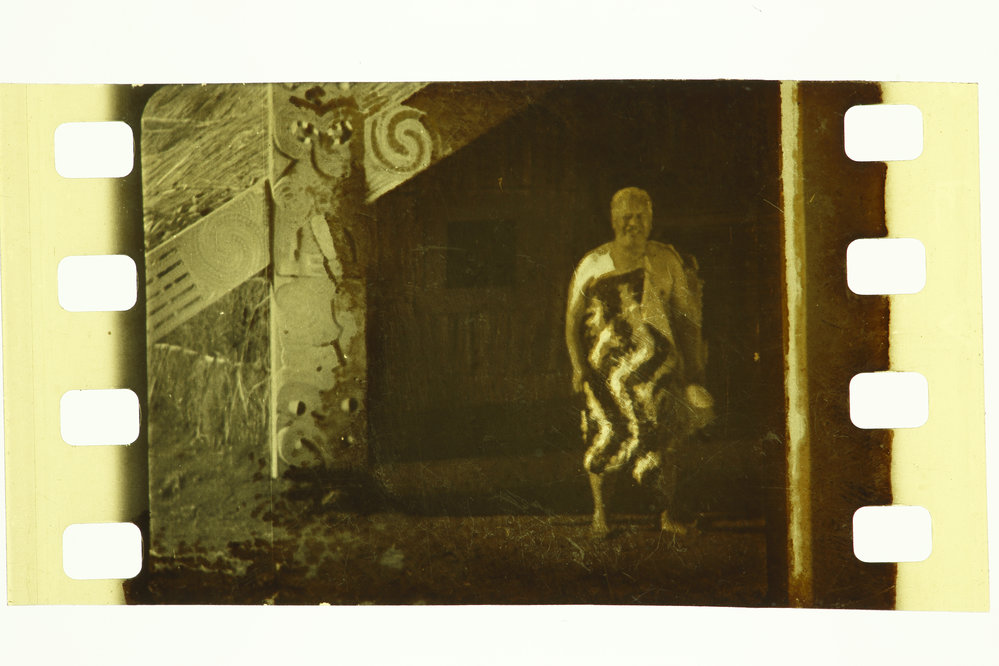 Hei Tiki Film - Māori man wearing korowai in front of Wharenui 1930 (1930). Pae Korokī, accessed 26/03/2026, https://paekoroki.tauranga.govt.nz/nodes/view/25676