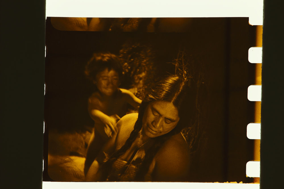 Date1930Reference NumberPhoto 19-246DescriptionA Māori woman sitting on the ground weaving while wearing a pari (bodice). A little boy is standing behind her completely naked. Image taken during the filming of the Hei Tiki (1935) film in 1930. Actor's unknown. Photographer unknown. It is possible that the photographer could have been Ted Coubrey or Henry Hopecross (both the cameramen for the Hei Tiki 1935 film). Image donated to the Tauranga City libraries by Tim Dalton (antique dealer) from the Margaret Goulding Estate. Image is in public domain. The Hei Tiki Film positives are part of AMS 227. FormatPositivePhysical DescriptionSingle frame of a section of nitrate film