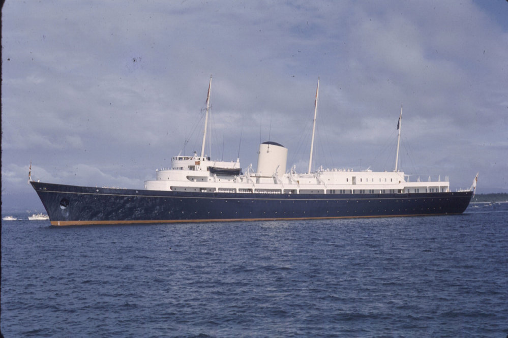 Date1963Reference NumberPhoto 06-424DescriptionRoyal yacht Britannia, coming into Te Awanui (Tauranga harbour) for visit of HM the Queen Elizabeth II and the Duke of Edinburgh, 1963.FormatPrintPhysical Descriptioncol slide