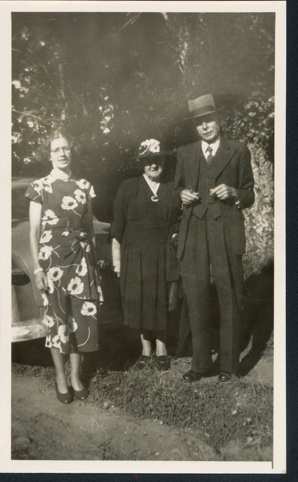 Datec. 1955Reference NumberPhoto 06-528DescriptionChristian family, c1955: from left, Lynette Harpham nee Christian, Mary Christian, Fred Christian. Used in a Christmas card folder.FormatPrintPhysical Descriptionblack and white print