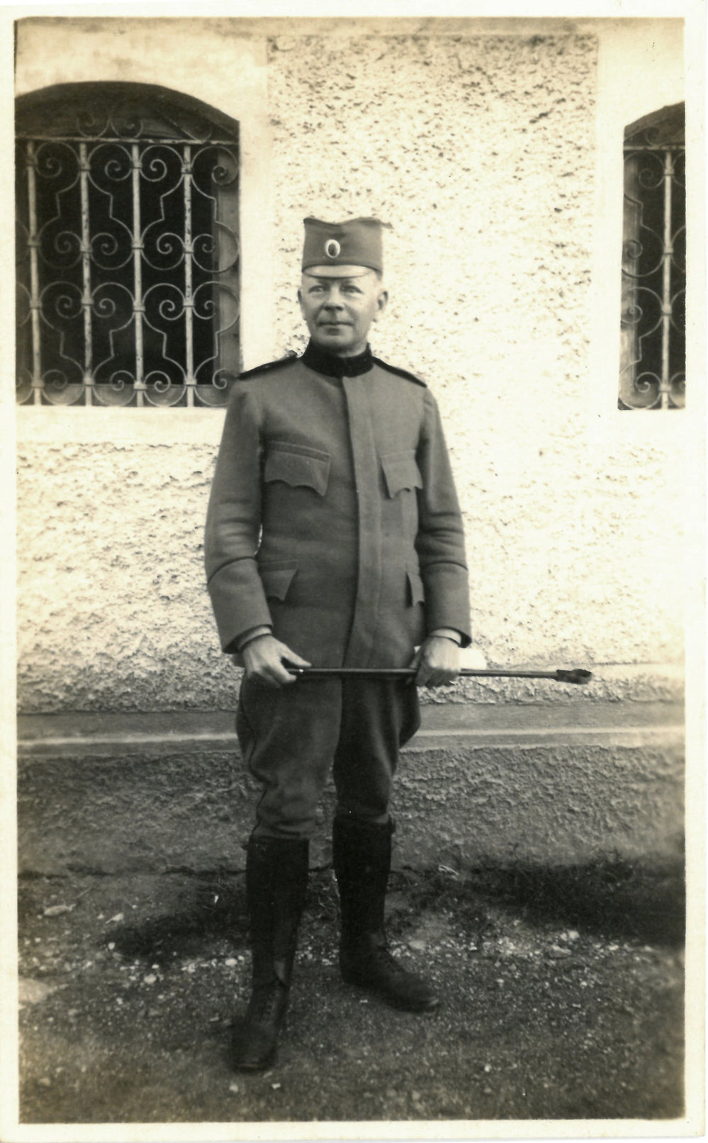 Date1914-1918Reference NumberPhoto 13-1516DescriptionImpromptu portrait of a soldier in the Balkans during the First World War. FormatPrint