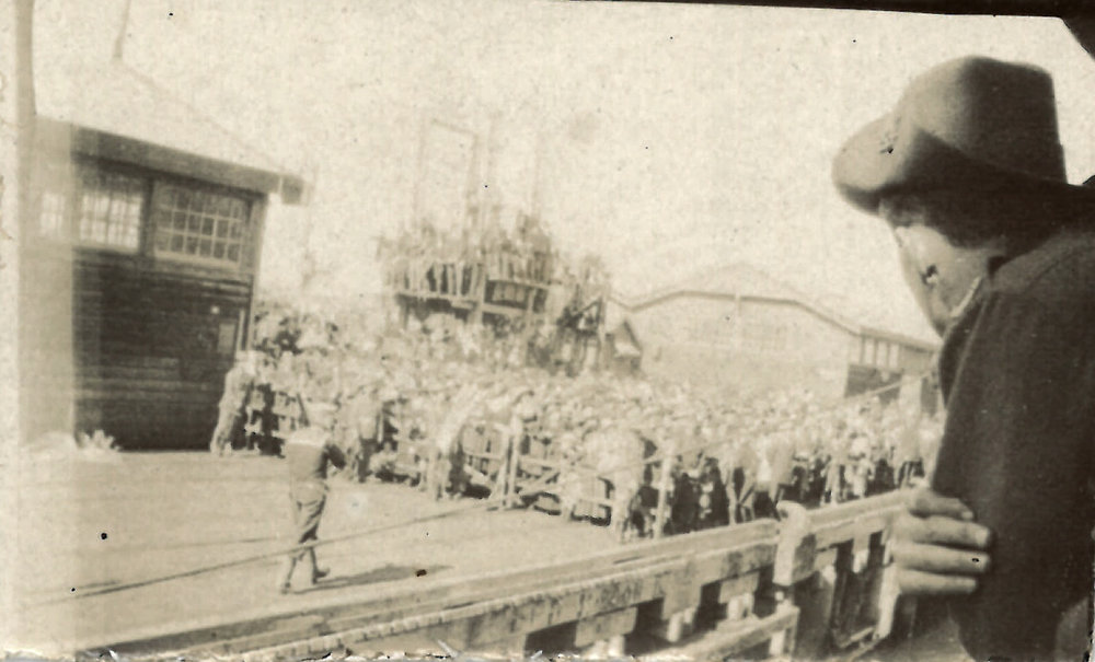 Date1914-1918Reference NumberPhoto 13-1550Description large crowd behind a barrier, probably a port given the presence of sailors in the foreground. FormatPrint