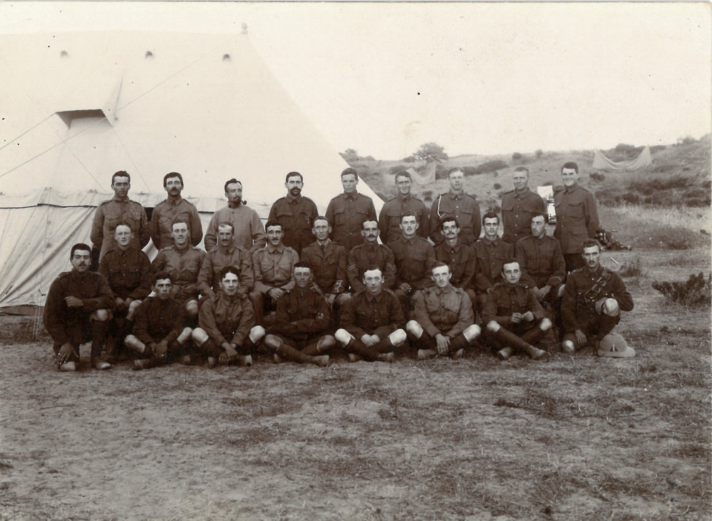 Date1914-1918Reference NumberPhoto 13-1556Description the Royal Engineers in Salonika. Written in Robert Goulding's hand on reverse in three columns, each representing a row (left columns is top row):--- Curtis, Castets, Fathalla, Goulding, Morgan, Holtham, Lovell-Smith, Pope Hutchings, Buckett, Ormiston, Clark, ---, McCairns, Ashwin, Pfeil, Rossi, Rossi, Lustie [or Lustic]Turner, ---, Galloway, Martin, Webster, ---, Hughes. Salonika. 1915FormatPrint