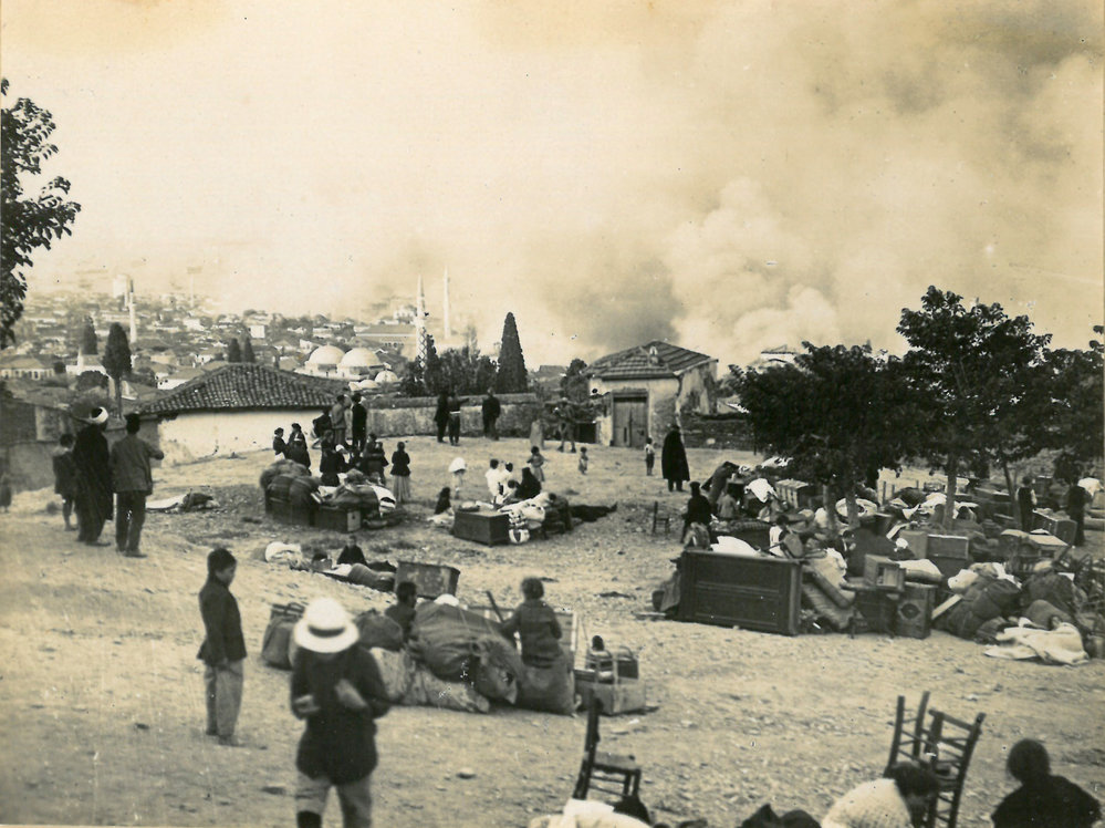 Date19 August 1917Reference NumberPhoto 13-1595DescriptionRoyal Flying Corps and Survey Company, R. E, 1917, photograph mounted on paper, printed underneath: The fire at dawn 19th August, from the Turkish Quarter.FormatPrint