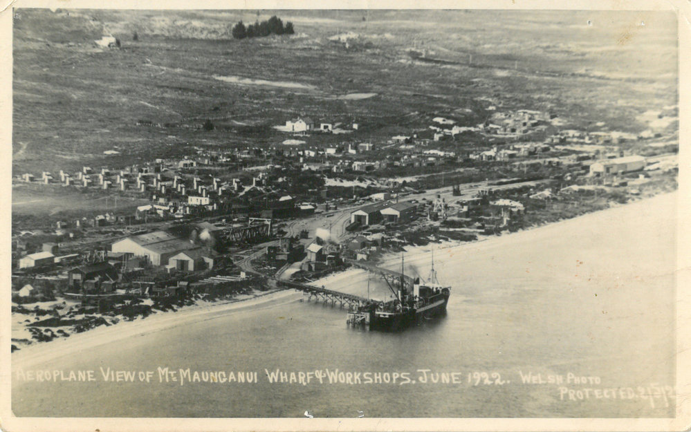 Date1922Reference NumberPhoto 13-702DescriptionPhotograph of Mount Maunganui wharf and workshops June 1922. Mount Maunganui Primary School is light-coloured building near centre of photo. From images collected during primary school centenary celebrations 2013. Credit: Welsh photo. Acknowledgement: Jusitne NealFormatPrint