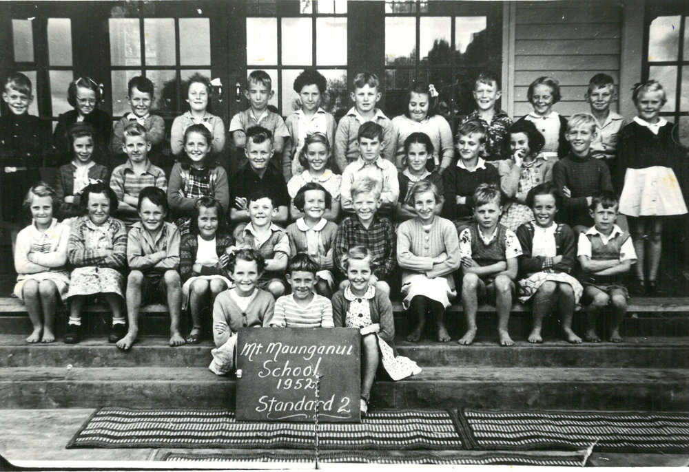 Date1952Reference NumberPhoto 13-1345DescriptionPhotograph of Mount Maunganui Primary School standard 2 1952. From images collected during centenary celebrations 2013. Row 4: Garry Cook – Jennifer Ogilvy – Winifred Hall – Jill__ – Neil Gilchrist – Gabrielle Reading – Bruce Johnson – Mary Cowie - (unknown) - Janet McLoughlan – Darryl Cocherton – Vivienne BardellRow 3: Lyn Hutton – Ross Paterson – Erin Steevens – Leigh Webber – Susan Hetherington – Jim Pocock – Margaret Taylor – Gary Rosenfelt – Margaret Thomason - (unknown) Row 2: Suzanne Emmett – Marlene Scott – John Ward – Janice Sorrenson – Desmond Farrelly – Janet Morrison – Milton Alexander – Cleone Walker – Roger Roberts – Yvonne Orr – Bradley Giles Row 1: Frances Potts – Archie Bowie – Jill Baker.FormatPrint