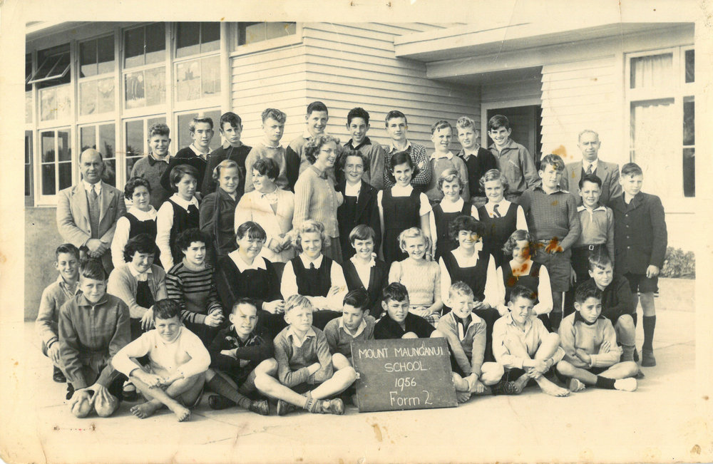 Date1956Reference NumberPhoto 13-1325DescriptionPhotograph of Mount Maunganui Primary School form 2 1956. From images collected during centenary celebrations 2013. Row 4: (unknown) - Neil Gilchrist – Jim Pocock – Leigh Webber – Cliff Sims - __Moody – Gary Rosenfelt – Michael Jones – Ross Peterson – Jim Peacock – Mr Donald (Headteacher) Row 3: Elaine Clarke – Gladys Grayling - __Jenkins – Mary Cowie – Kathleen Byrne – Janet Morrison – Margaret Taylor – Jill Baker – Vivienne Bardell – Barry Magee – (unknown) - Garry CookRow 2: Stanley Dobney – Marlene Scott – Marion Jones – Kathleen Forkett – Jessie Scott – Suzanne Emmett – Anne Watson – Patricia Byrne – Janice Sorrenson - Roger RobertsRow 1: (unknown) - John Ward - (unknown) - Milton Alexander - (unknown) - Selwyn Martin - Barry Kidd - Archie Bowie - Selwyn Collier Photograph of Mount Maunganui Primary School form 2 1956. From images collected during centenary celebrations 2013. Row 4: (unknown) - Neil Gilchrist – Jim Pocock – Leigh Webber – Cliff Sims - __Moody – Gary Rosenfelt – Michael Jones – Ross Peterson – Jim Peacock – Mr Donald (Headteacher) Row 3: Elaine Clarke – Gladys Grayling - __Jenkins – Mary Cowie – Kathleen Byrne – Janet Morrison – Margaret Taylor – Jill Baker – Vivienne Bardell – Barry Magee – (unknown) - Garry CookRow 2: Stanley Dobney – Marlene Scott – Marion Jones – Kathleen Forkett – Jessie Scott – Suzanne Emmett – Anne Watson – Patricia Byrne – Janice Sorrenson - Roger RobertsRow 1: (unknown) - John Ward - (unknown) - Milton Alexander - (unknown) - Selwyn Martin - Barry Kidd - Archie Bowie - Selwyn Collier FormatPrint