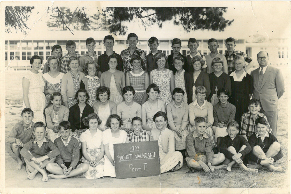 Date1957Reference NumberPhoto 13-504DescriptionPhotograph of Mount Maunganui Primary School Form 2 1957. From images collected during centenary celebrations 2013. Row 4: Bruce Fegan - David Thompson - Larry Hurst - Ray Nichols - Milton Aitken - Bill Hetherington - Kevin Mulgrew - James --- David King - Philip McDonaldRow 3: Margaret Struckett - Anne O’Carroll - Noeleen Phillips - Glenys Dooney - Linley Hollis - Isla Gilchris - Rosalie Moss - Lyn Eades - Dawn Askew - Lois O’Donnell - Carol Lockwood - Mr HowieRow 2: Ann Dyer - Faye Denyer - Errol Brightwell - June Beckett - Doreen McGill - Jocelyn Moore - Helen Neno - Sue McNaughton - Len PatonRow 1: Anthony Sickler - Bill Wilkinson - Guy Fowler - Dorothy Goddard - Thea Fowler - Kay Donald - Lynette Thomase - Dan Russel - Barry Dyer - Gary HigginsFormatPrint