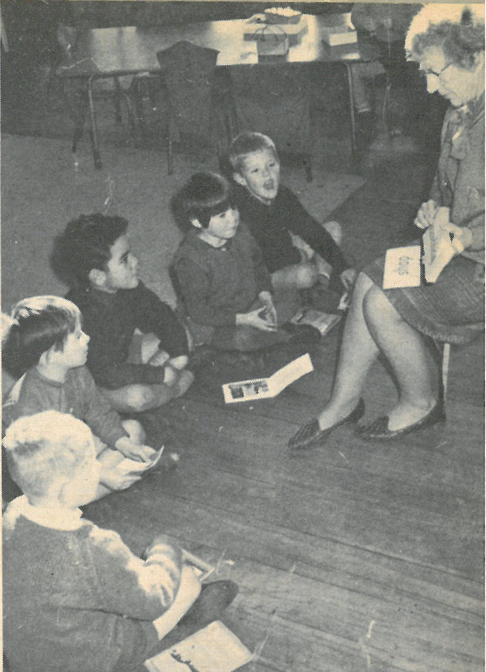 Date1968Reference NumberPhoto 13-722DescriptionPhotograph of Mrs Cullen and reading class at Mount Maunganui Primary School appearing in Tauranga Photo News p. 43 No. 74 1968. From images collected during centenary celebrations 2013.FormatPrint