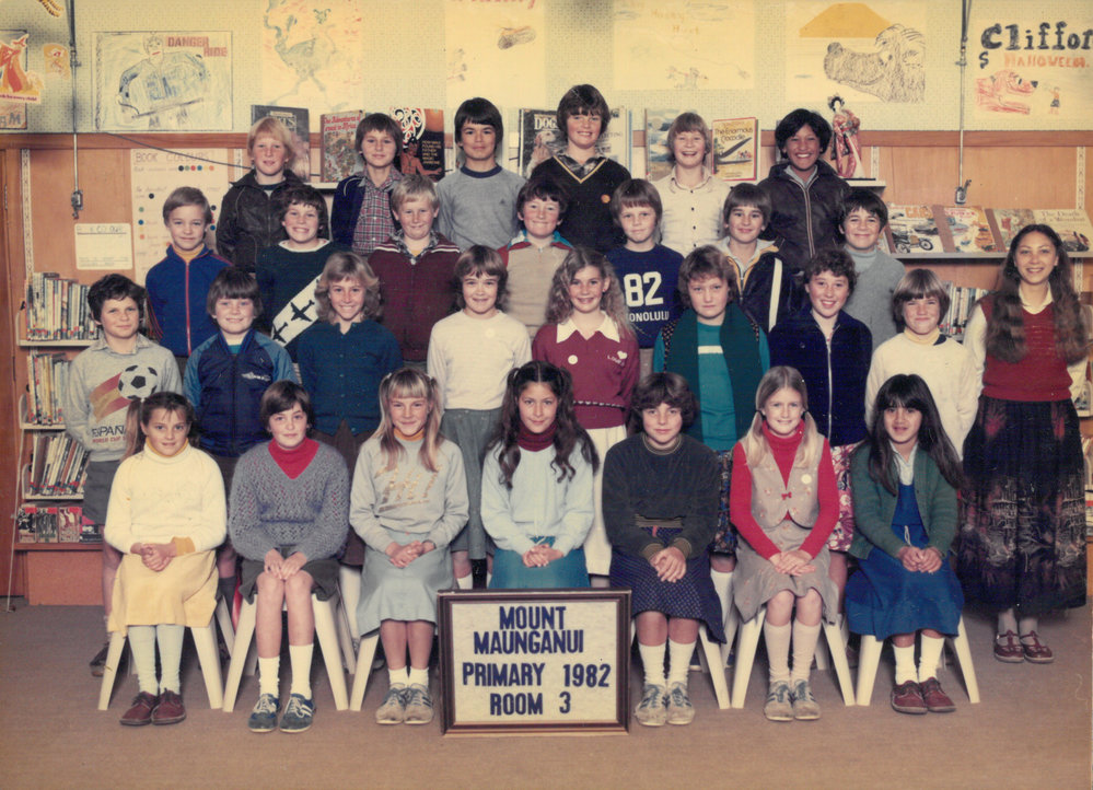 Date1982Reference NumberPhoto 13-1070DescriptionPhotograph of Mount Maunganui Primary School room 3 1982. From images collected during centenary celebrations 2013. FormatPrint