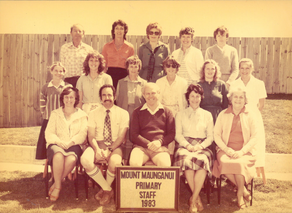 Date1983Reference NumberPhoto 13-1268DescriptionPhotograph of Mount Maunganui Primary School staff 1983. From images collected during centenary celebrations 2013. FormatPrint