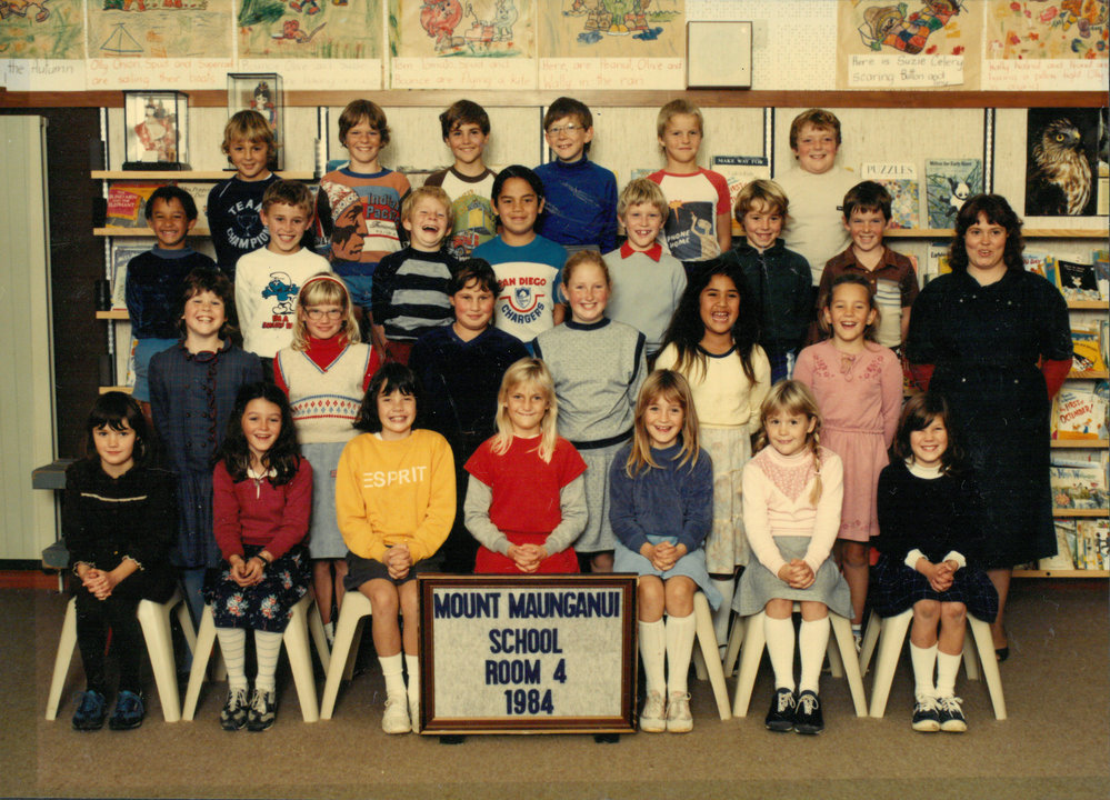 Date1984Reference NumberPhoto 13-1235DescriptionPhotograph of Mount Maunganui Primary School room 4 1984. From images collected during centenary celebrations 2013. FormatPrint