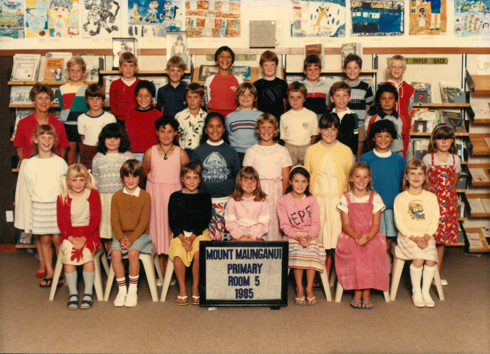 Date1985Reference NumberPhoto 13-1241DescriptionPhotograph of Mount Maunganui Primary School room 5 1984. From images collected during centenary celebrations 2013. FormatPrint