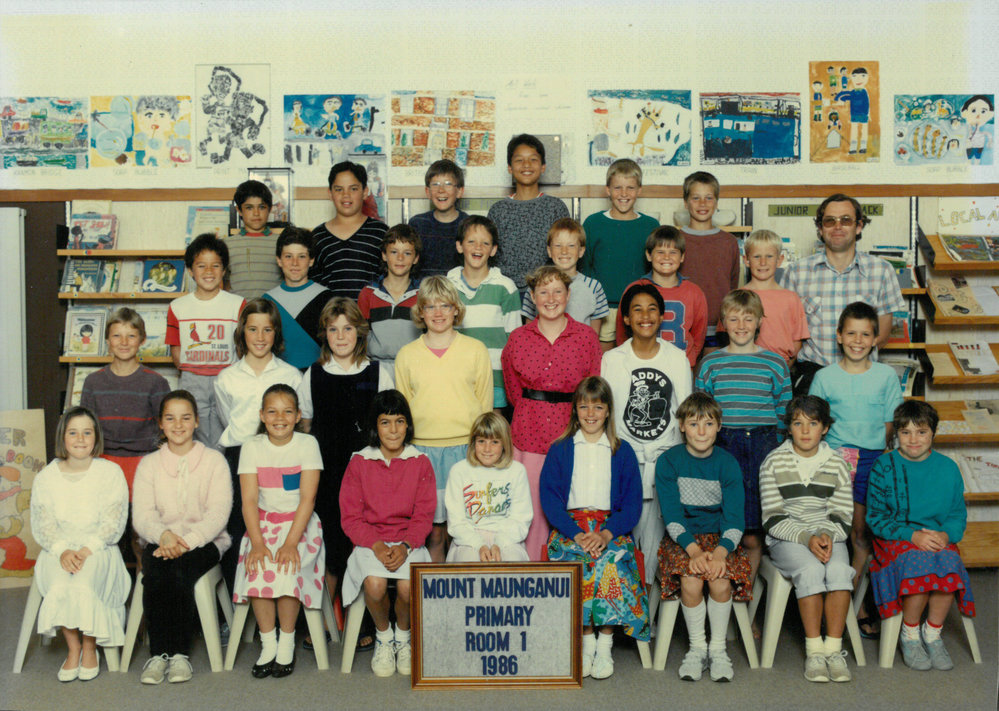 Date1986Reference NumberPhoto 13-1223DescriptionPhotograph of Mount Maunganui Primary School room 1 1986. From images collected during centenary celebrations 2013. FormatPrint