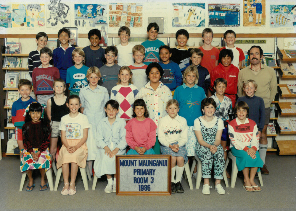 Date1986Reference NumberPhoto 13-1232DescriptionPhotograph of Mount Maunganui Primary School room 3 1986. From images collected during centenary celebrations 2013. FormatPrint