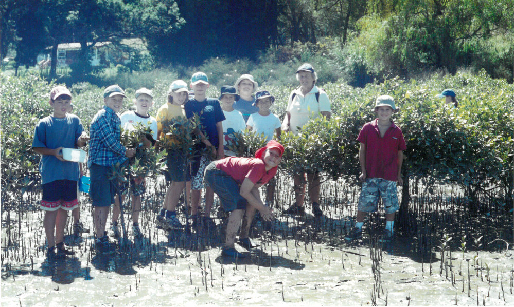 Date1990Reference NumberPhoto 13-1148DescriptionPhotograph of Mount Maunganui Primary School pupils at estuary study trip 2001?Children navigating araound mangroves in the mud at Tye Park, Welcome Bay. Gordon Campbell bending in front. Then from left: Aiden Brown - Ethan Rhodes - Logan Jackson - Jamie De Seymour - Adam Dunstan - Tineke Dyvestyn - Chris Priestly - Amanda Wills - Miss Howat (teacher) - James Clinton. From images collected during centenary celebrations 2013. FormatPrint