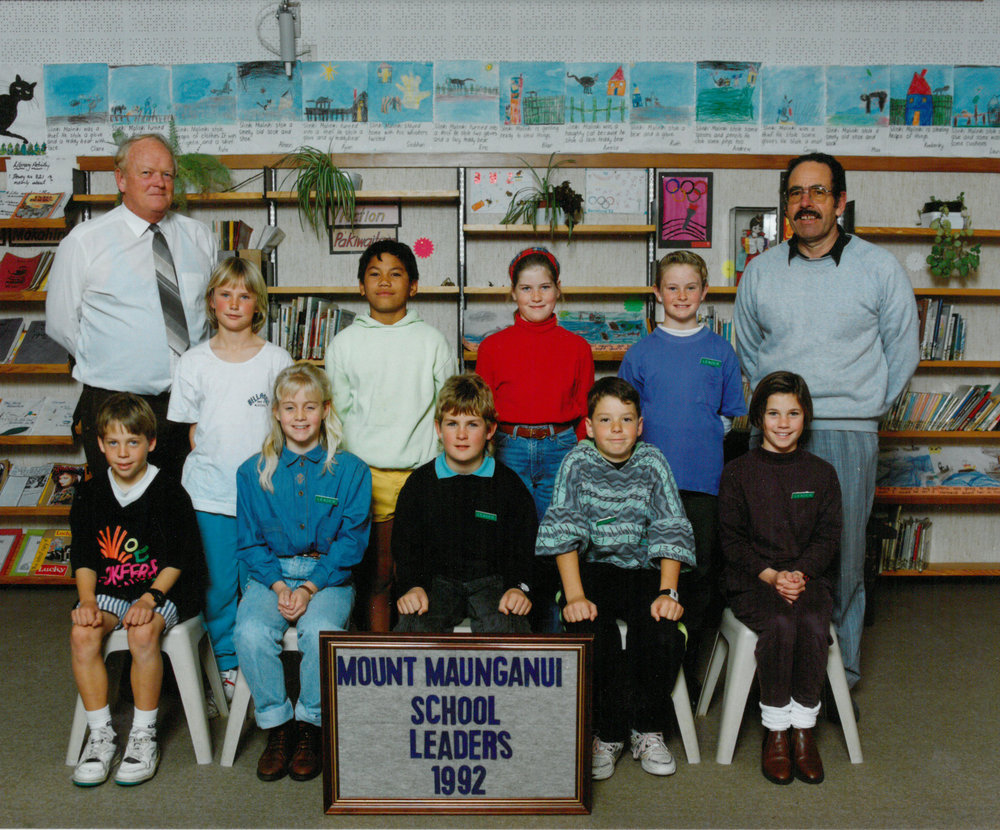 Date1992Reference NumberPhoto 13-1307DescriptionPhotograph of Mount Maunganui Primary School leaders 1992. From images collected during centenary celebrations 2013. FormatPrint