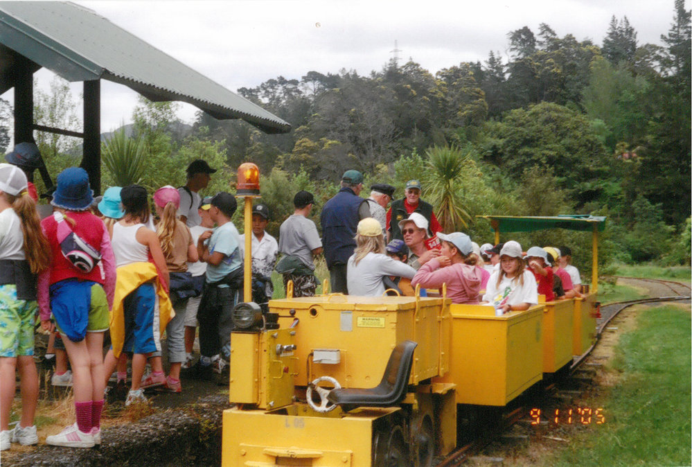 Date1996Reference NumberPhoto 13-1173DescriptionPhotograph of Mount Maunganui Primary School children on train as part of the Waihī Historical Gold Mining camp 1996. From images collected during centenary celebrations 2013. Photograph of Mount Maunganui Primary School children on train as part of the Waihī Historical Gold Mining camp 1996. From images collected during centenary celebrations 2013. FormatPrint