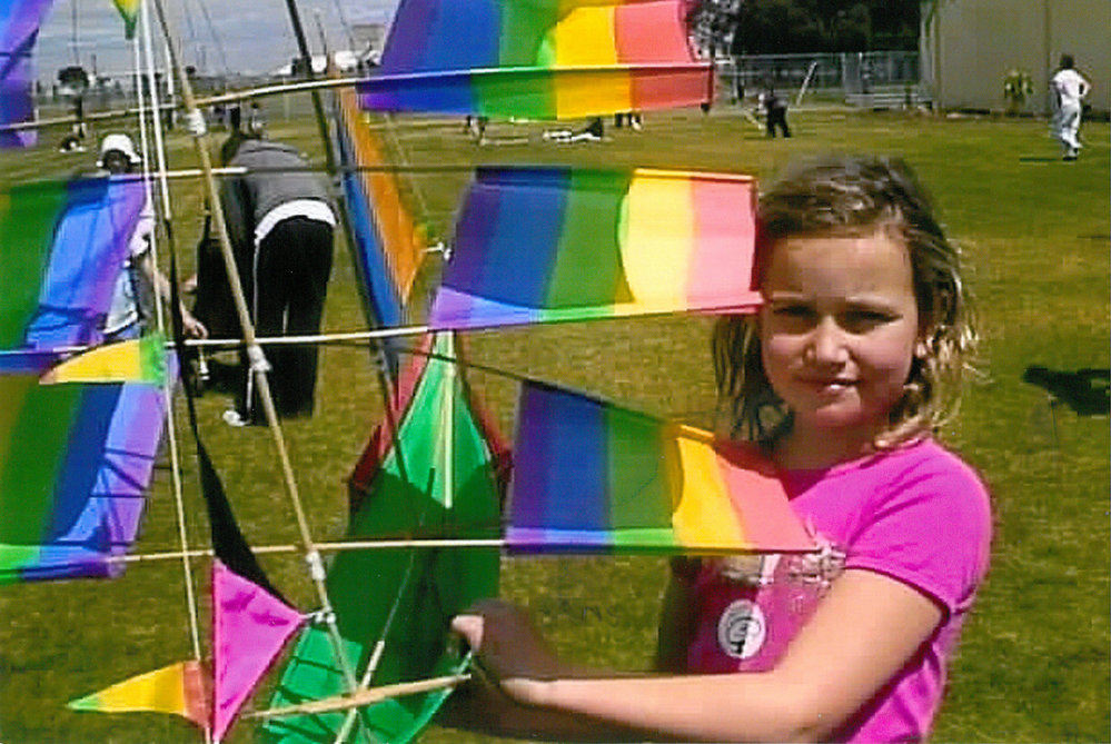 Date2002Reference NumberPhoto 13-1320DescriptionPhotograph of Mount Maunganui Primary School Cara Ryan kite flying 2002. From images collected during centenary celebrations 2013. FormatPrint