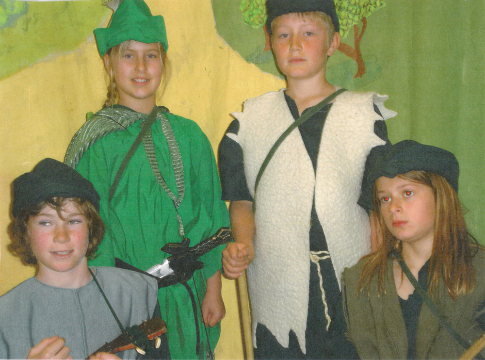 Date2006Reference NumberPhoto 13-1167DescriptionScanned picture of Mount Maunganui Primary School children as Robin Hood & his Merry Men in musical 2006. Shown are Alan-a-Dale (Josh Taylor) - Robin Hood (Annaliese Burggraaf) - Will Scarlet (Rory Moulder) - Little John (Freya Boyle). From images collected during centenary celebrations 2013. FormatPrint