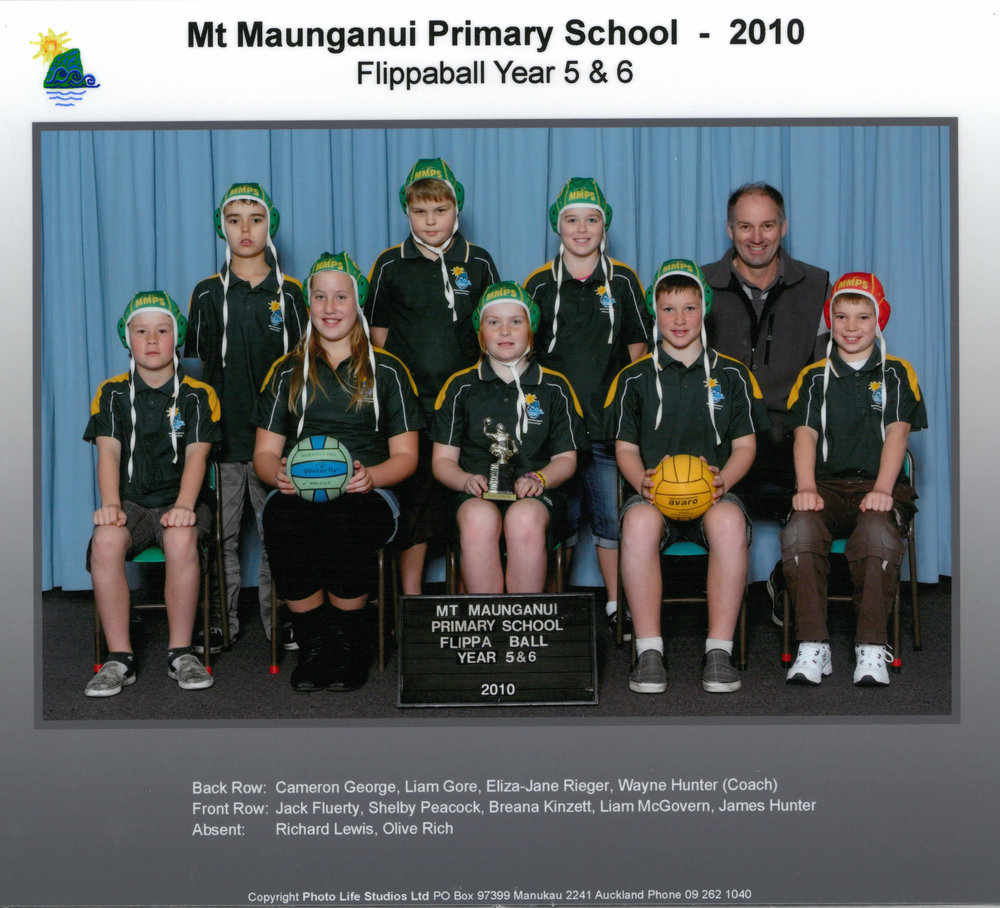 Date2010Reference NumberPhoto 13-1353Descriptionhotograph of Mount Maunganui Primary School Flippaball year 5 & 6 2010. From images collected during centenary celebrations 2013. Row 2: Cameron George – Liam Gore – Eliza-Jane Rieger – Wayne Hunter (Coach)Row 1: Jack Fluerty – Shelby Peacock – Briana Kinzett – Liam McGovern – James Hunterhotograph of Mount Maunganui Primary School Flippaball year 5 & 6 2010. From images collected during centenary celebrations 2013. Row 2: Cameron George – Liam Gore – Eliza-Jane Rieger – Wayne Hunter (Coach)Row 1: Jack Fluerty – Shelby Peacock – Briana Kinzett – Liam McGovern – James HunterFormatPrint