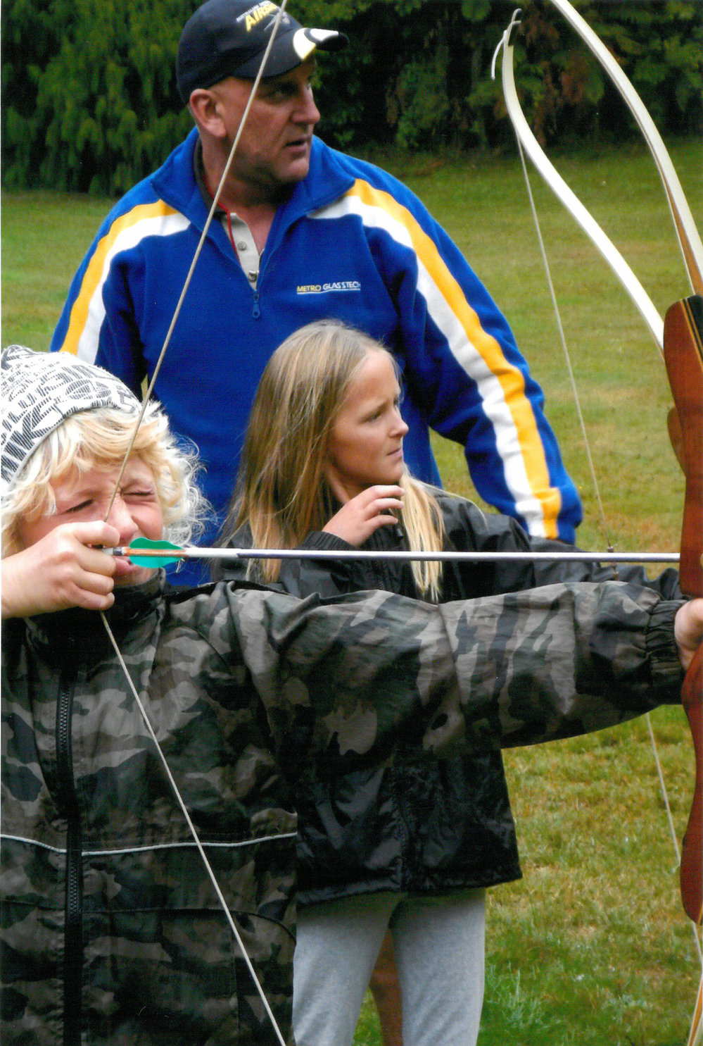 Date2013Reference NumberPhoto 13-1208DescriptionPhotograph of Mount Maunganui Primary School Orkney Team archery at Tūī Ridge camp April 2013. Shown are Kya Knight and Shaye Robertson-Russell. From images collected during centenary celebrations 2013. FormatPrint